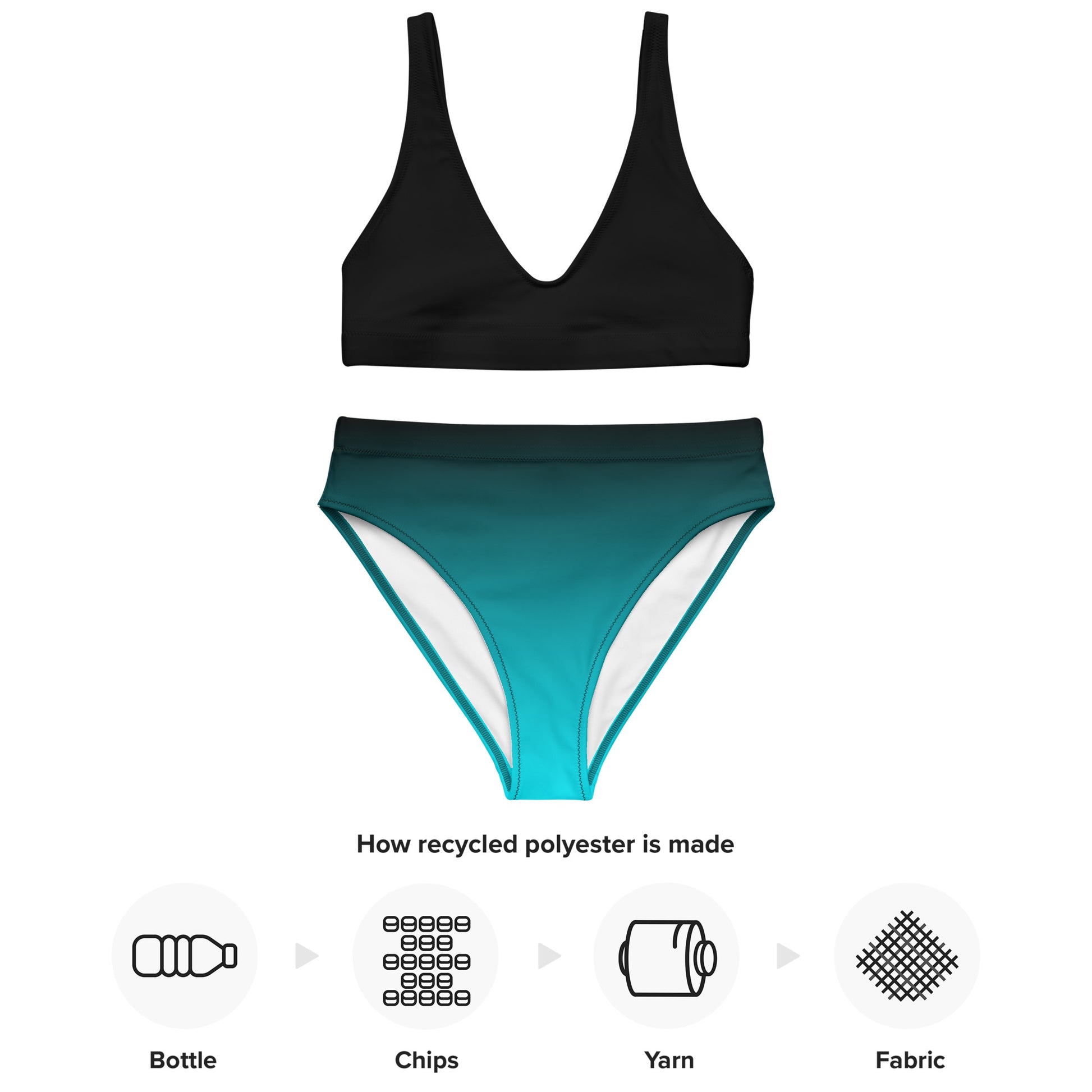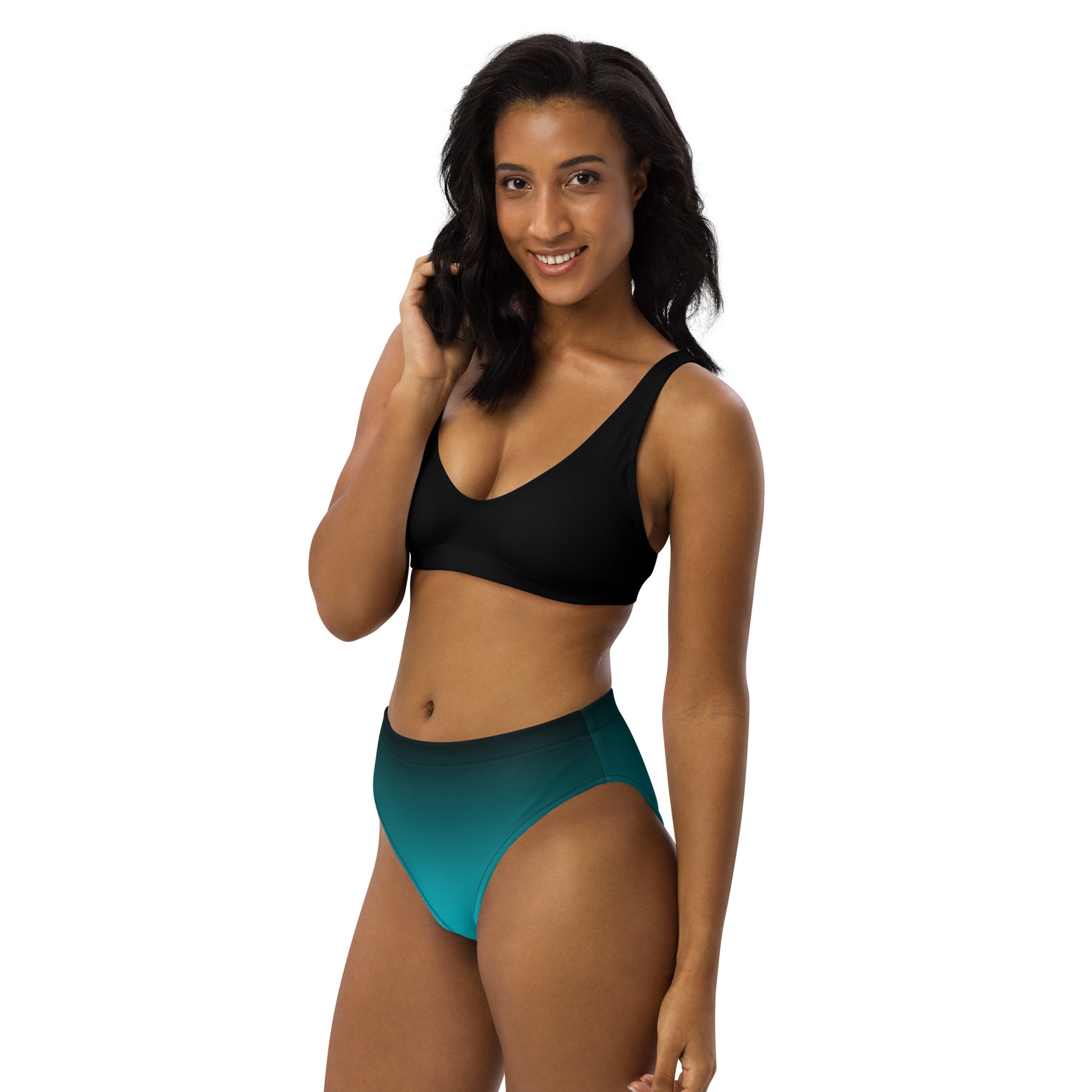 Aqua-Black Ombre high-waisted bikini
