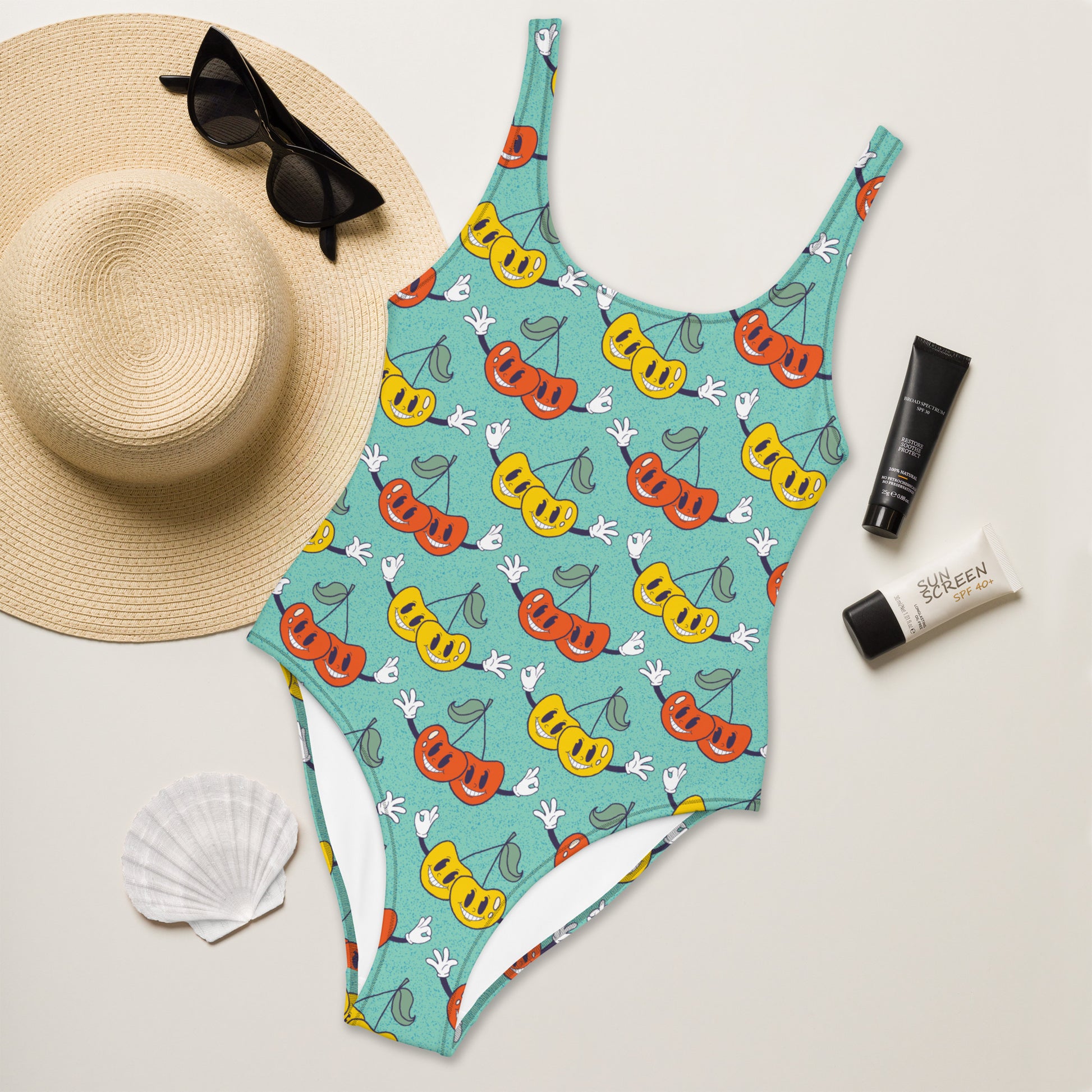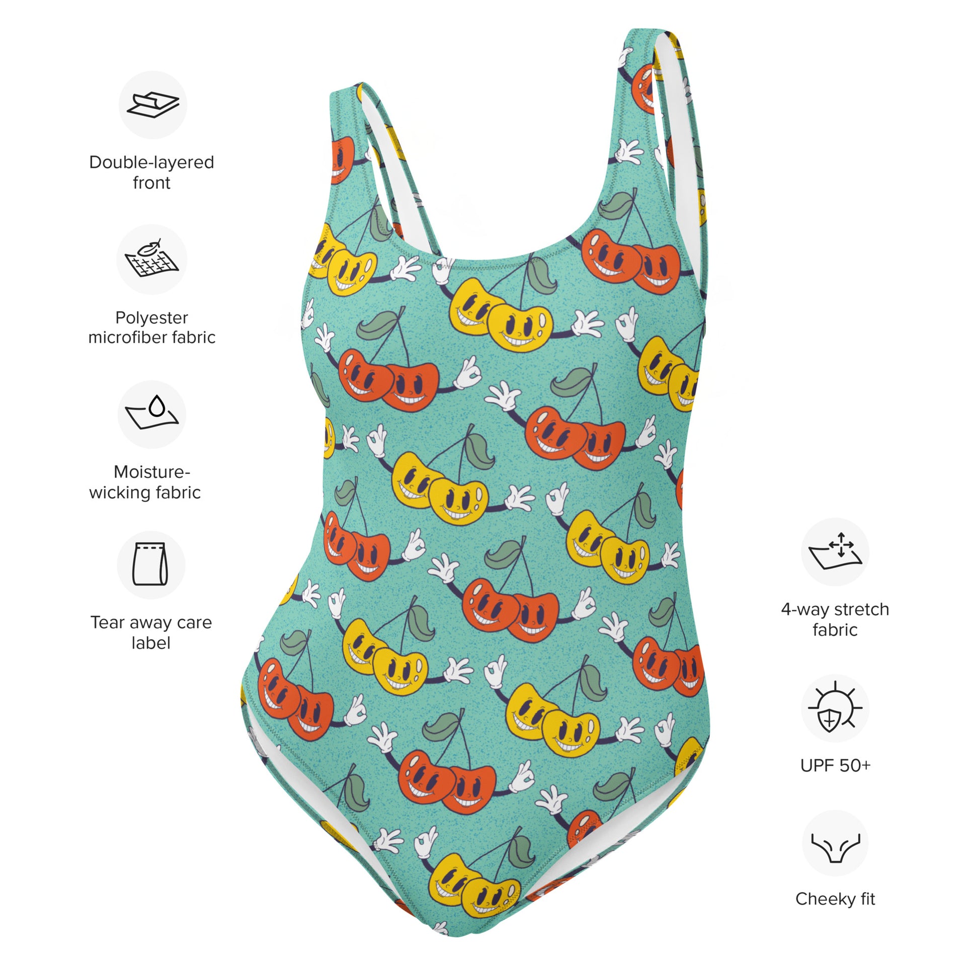 Retro Cartoon Cherries One-Piece Swimsuit